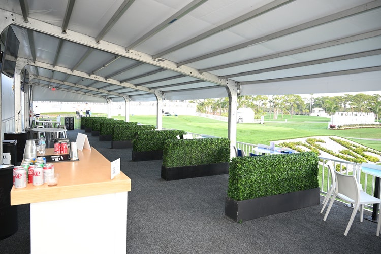 Located at the Bear Trap and overlooking the 16th and 17th holes, this is the perfect location to entertain clients or have an intimate championship experience with friends and family. The Flagler Tables offer patrons a reserved table, perfect for guests seeking a high-end event experience.